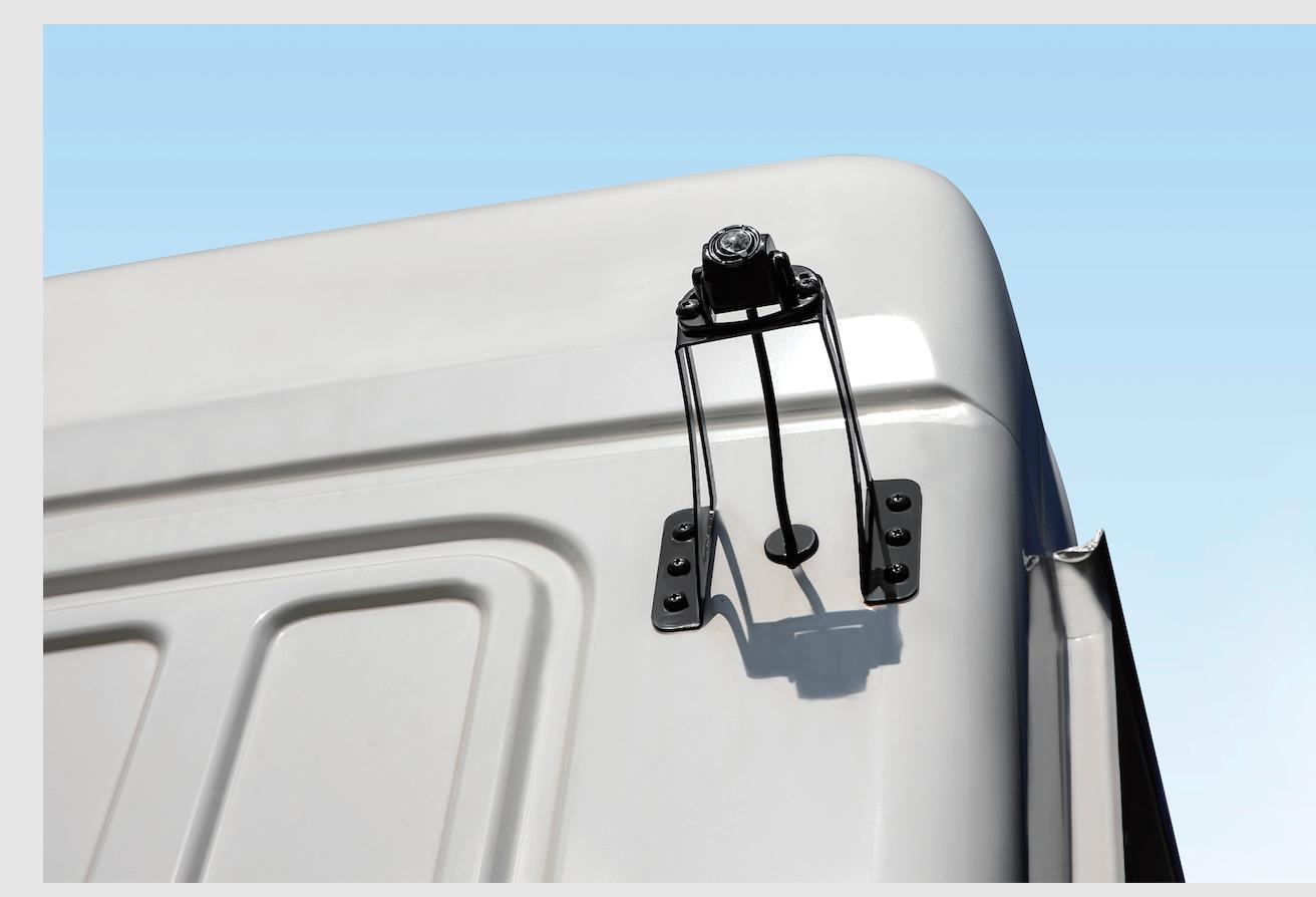 上裝與底盤連接采用止推板和拉馬結(jié)合方式,降低應(yīng)力的同時有效提高車架壽命;從承載要求、節(jié)能穩(wěn)定出發(fā),加強上裝和車身結(jié)構(gòu)的匹配設(shè)計,提高整車穩(wěn)定性,減少側(cè)翻率。