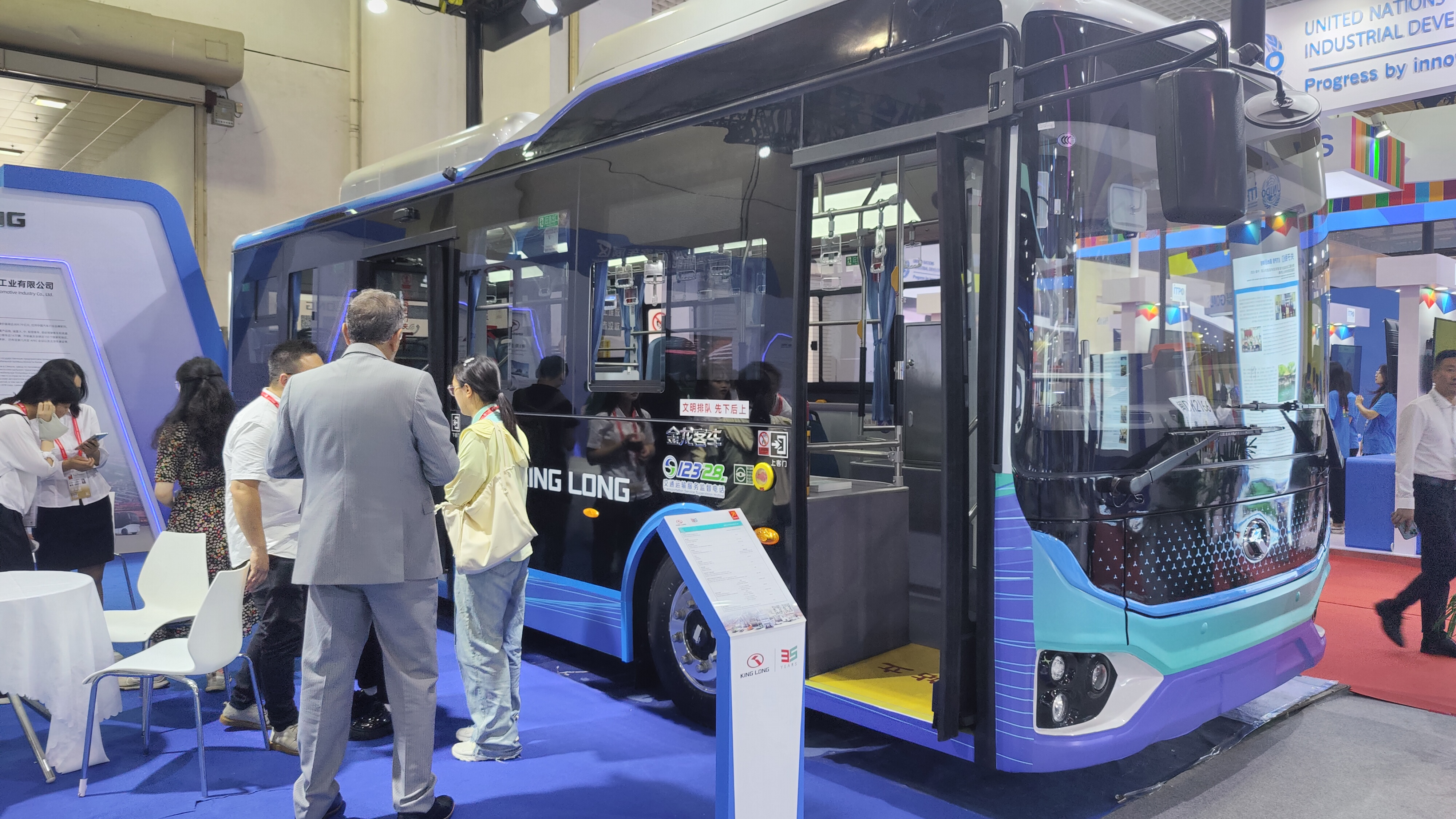 多年來,金龍不僅深入攻關(guān)自主創(chuàng)新技術(shù),形成自己的自動駕駛產(chǎn)品矩陣,同時在國家戰(zhàn)略大背景下,快速響應(yīng)市場需求,助力發(fā)展智慧交通。在中國——中亞國家合作展區(qū)的金龍五代公交就是金龍根據(jù)國內(nèi)公交市場小型化、適老化趨勢推出的針對性系列產(chǎn)品之一。金龍以人為本,針對實際需求,在細節(jié)處發(fā)力,在車輛上采用一級踏步設(shè)計,踏步高度僅340mm,方便老年人上下車,實現(xiàn)無障礙通行;車輛電池、電機、電控等零部件防護等級也達到了行業(yè)最高的IP69,安全性進一步提升,廣受好評。