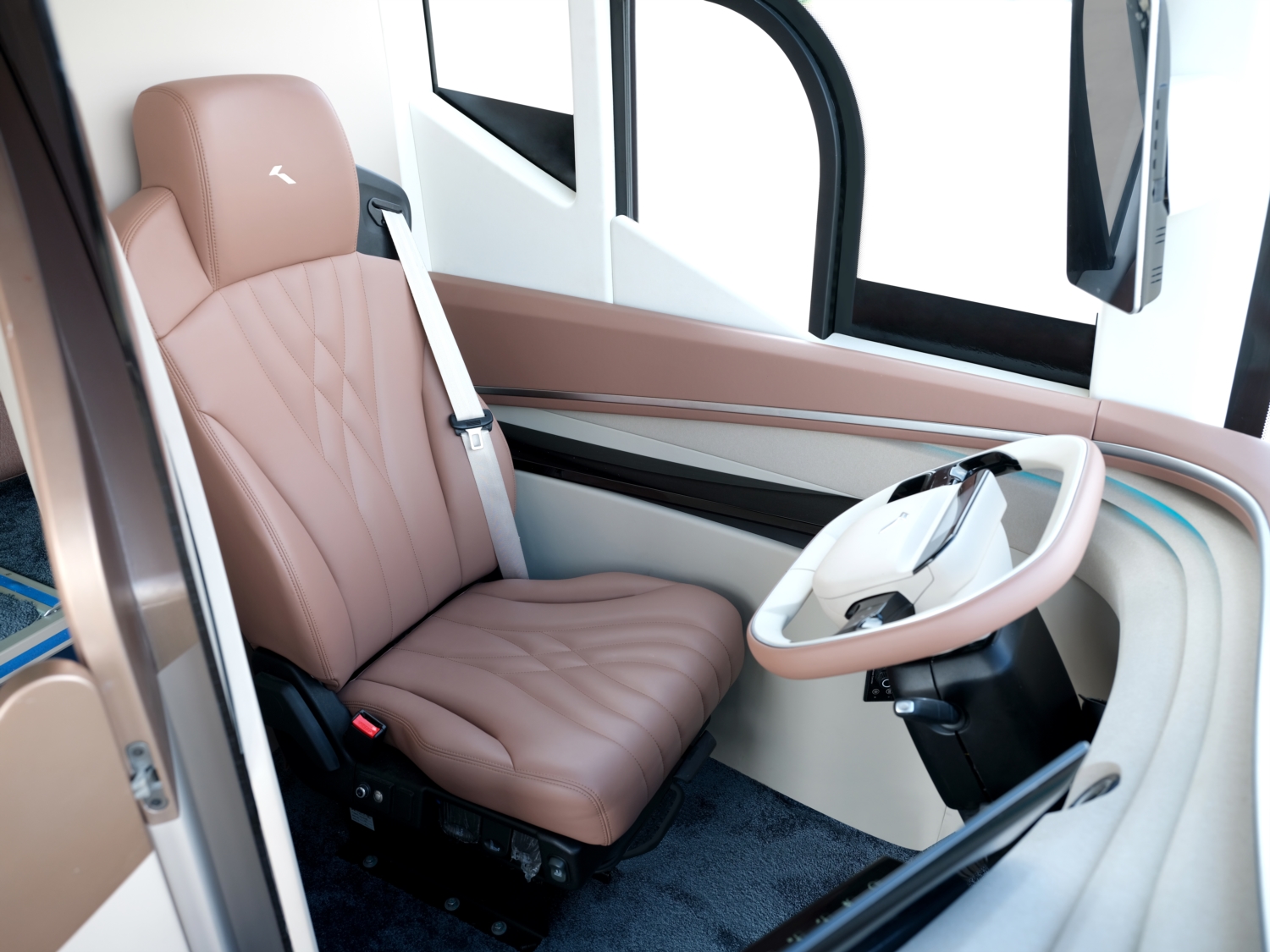 車身主要配置輪邊驅(qū)動(dòng);氣囊空氣懸架(獨(dú)立懸架,阻尼可控);前后盤式制動(dòng)器(WABCO AEBS+ESC)爆胎應(yīng)急安全裝置;電機(jī)能量回收;全承載車身;氣動(dòng)減震司機(jī)椅(三點(diǎn)式安全帶);駕駛區(qū)全景天窗;環(huán)繞式儀表臺(tái);大屏中控屏(15.6寸);免維護(hù)電池;LED大燈;自動(dòng)大燈;自動(dòng)雨刮;冷暖空調(diào);2+1座椅(可選會(huì)議室,吧臺(tái)等)