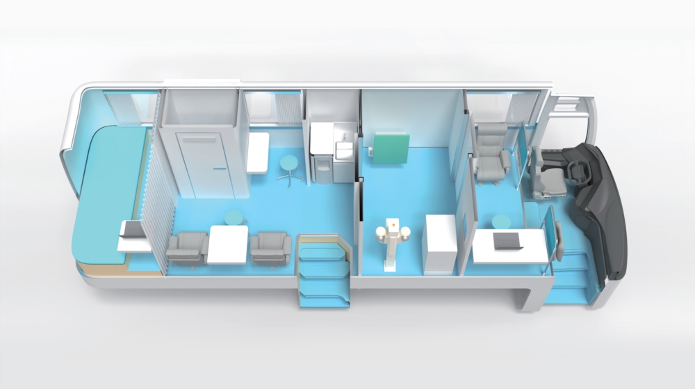 8米客車平臺(tái),空間充裕,可配置吸頂和壁掛空調(diào),車內(nèi)搭載鉛房,布局工作臺(tái)和檢查床,可裝配客戶所需各類醫(yī)療專用設(shè)備,可實(shí)現(xiàn)DR檢查、B超心電檢查、電測(cè)聽(tīng)、采血、生化等功能,滿足常規(guī)體檢、職業(yè)病體檢等用途。