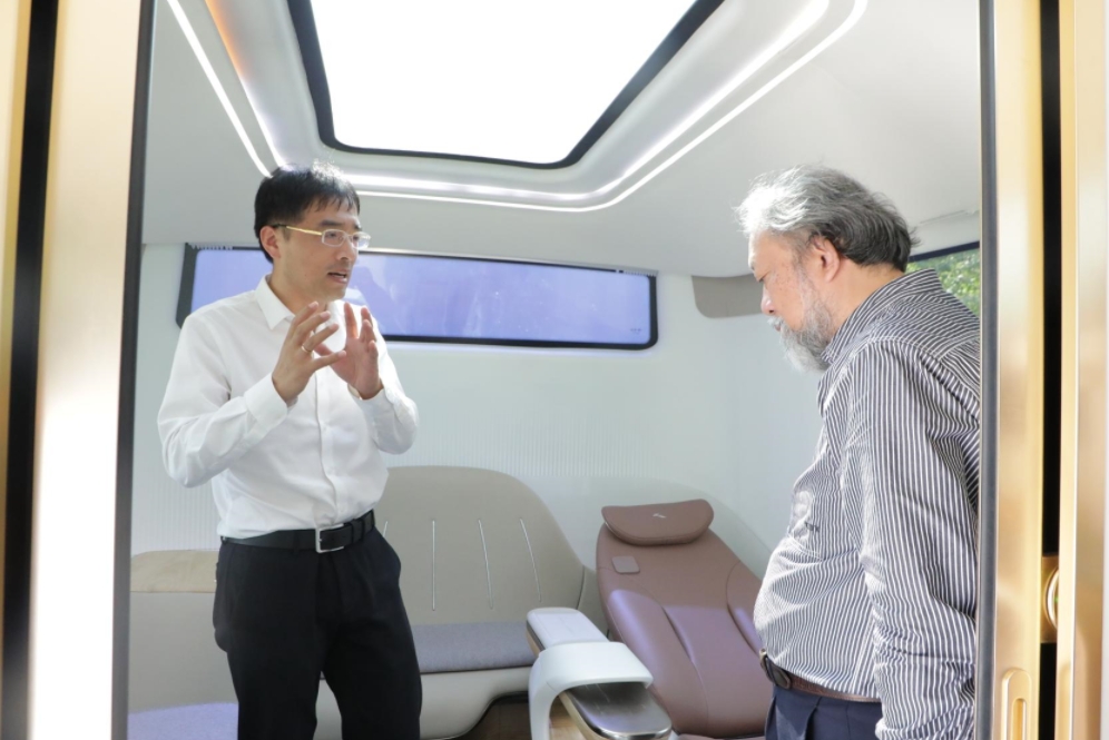 在實地參觀金龍最新的科技成果——MerryCombo純電動數(shù)智大巴后,蘇亮向王健教授詳細介紹了金龍近幾年在新能源、智能網(wǎng)聯(lián)等領域創(chuàng)新成果的商業(yè)化應用及落地情況和未來戰(zhàn)略規(guī)劃。